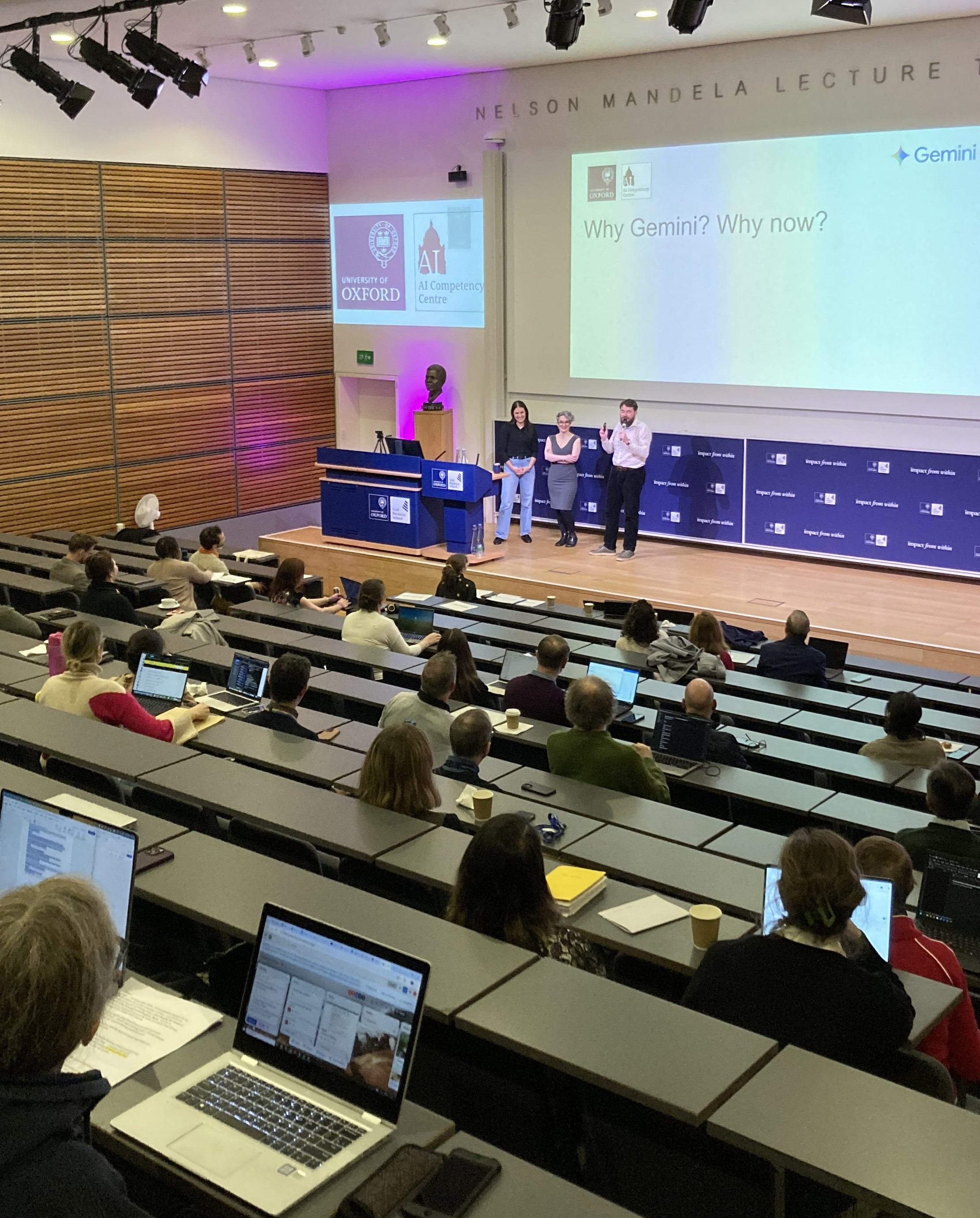 Following a successful 6-month pilot involving 240 colleagues, Google and the AI Competency Centre hosted the Gemini Pro pilot Showcase, where pilot participants presented their successes with Google’s Gemini, NotebookLM and Google AI Studio tools. Over 70 colleagues from across the collegiate University gathered at Saïd Business School to discover how staff across Oxford are using Gemini to enhance research, teaching and learning, and operations. The event also provided space for networking, practical discussion, and sharing emerging practices in AI.