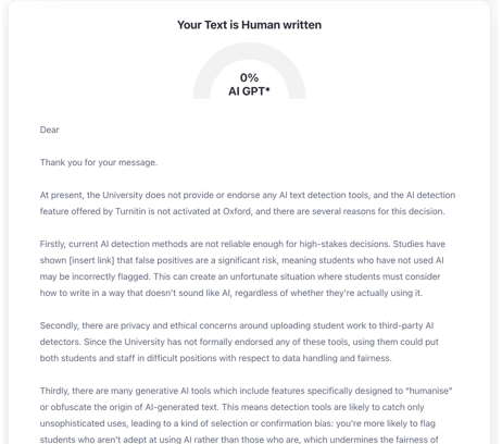 Rather than investing in unreliable detection software, we should lean into what makes Oxford education distinctive: knowing our students through sustained interaction.