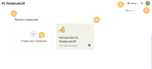 This is the landing page when you first open NotebookLM: